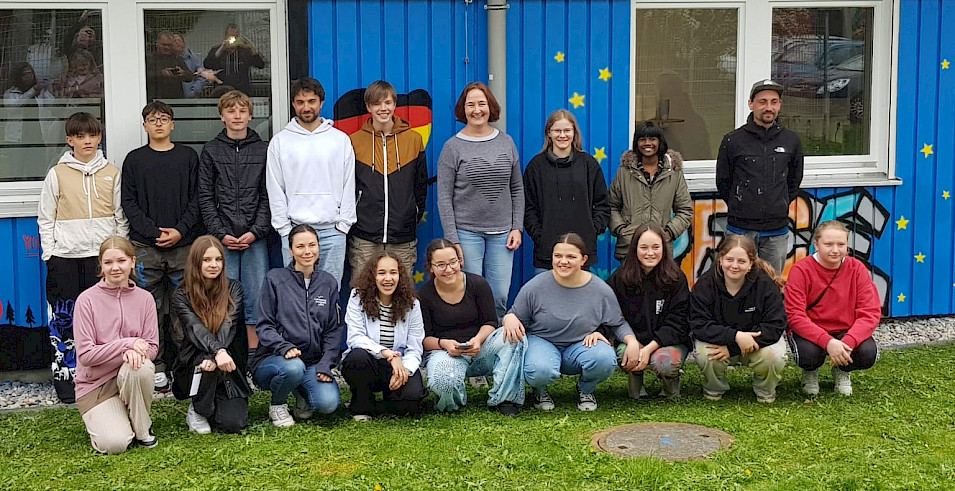 Das Jugendhaus LechsideLounge in Kaufering ist stolz auf sein neuestes Highlight: Das beeindruckende Graffiti „Lechside goes Europe“, das in nur fünf Tagen von 15 engagierten Jugendlichen unter Anleitung des bekannten Graffiti-Künstlers Vincent Göhlich (erwa.one) gestaltet wurde. Das farbenfrohe Kunstwerk auf der Fassade des Jugendhauses zeigt die Ideen und Inspirationen unserer Jugendlichen zur Vielfalt Europas.