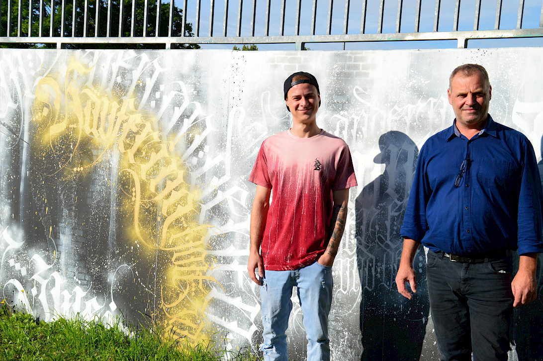 (Foto: Graffiti-Künstler Joél Hausner zusammen Dritter Bürgermeister Andreas Keller)