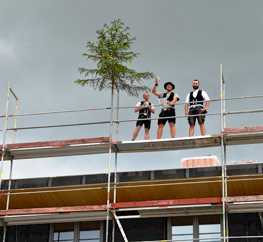 Nun konnte am Freitag das Richtfest gefeiert werden. Nach Spatenstich und Grundsteinlegung konnte man sich beim Richtfest erstmals eine konkrete Vorstellung von dem machen, was hier einmal entstehen wird.