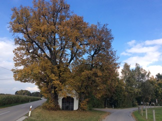 Die Bilder (Bildquellen: Ludwig Pertl) zeigen die Feldkapelle am Riedweg. Vorher mit den Linden und dann nach der Fällung am 17.11.2015 wegen Pilzerkrankung.